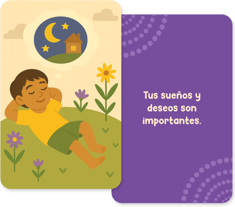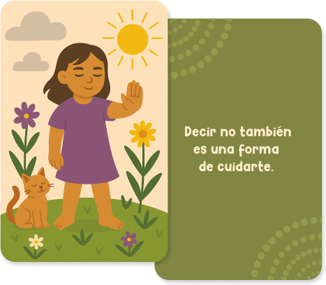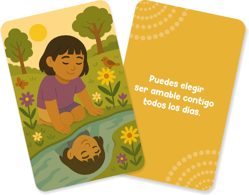 Un conjunto de 40 cartas digitales ilustradas con frases cortas, afirmativas y empáticas, escritas especialmente para niños de 6 a 12 años.