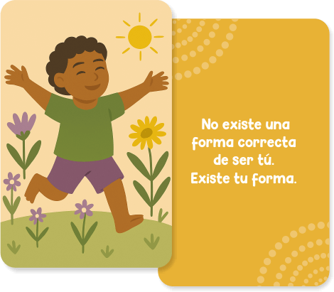 Durante mi propia experiencia como madre, entendí cuánto la infancia es un territorio sensible — donde todo se aprende, incluso la forma en que el niño va a verse a sí mismo por el resto de su vida.Esta baraja nació como una herramienta simple, pero poderosa.